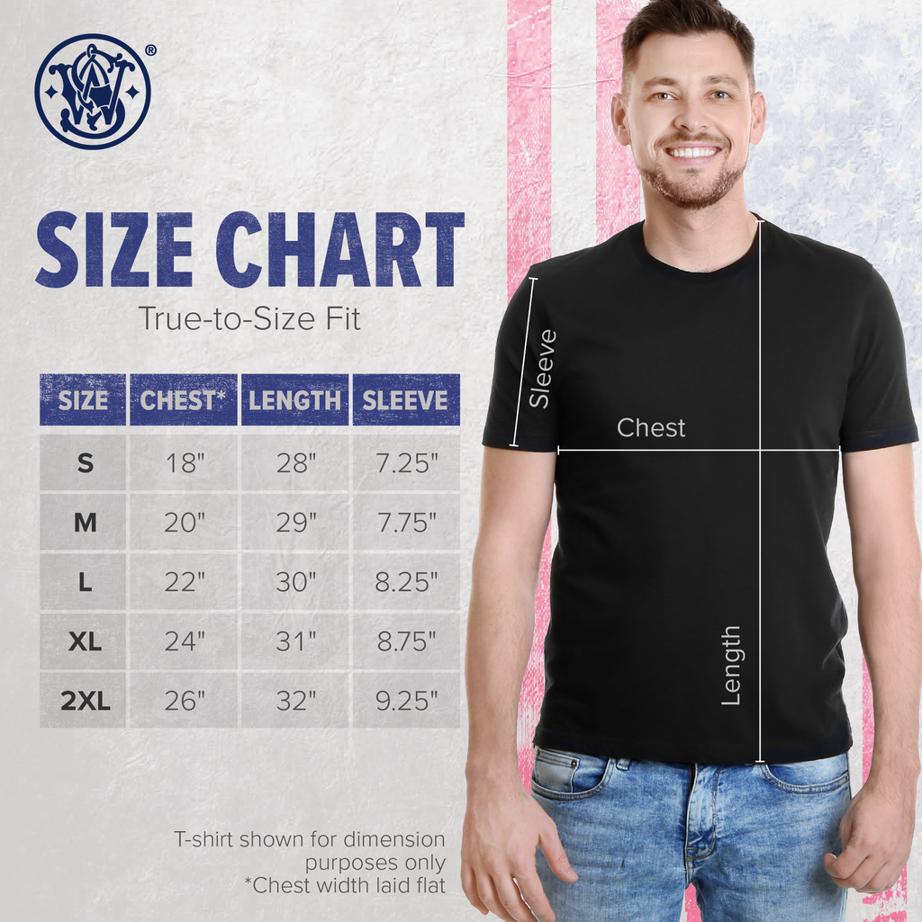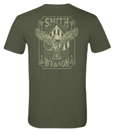 Embrace the spirit of freedom with our Smith & Wesson tee, featuring a bold design playing card with a bald eagle nestled within a spade adorned with the American flag. This unique and striking imagery symbolizes strength, courage, and patriotism. Crafted with quality materials for comfort and longevity, this tee is more than just apparel—it's a statement of unwavering American pride. Featuring double-needle stitched neckline, bottom hem and sleeves, seamless collar and shoulder-to-shoulder taping, this tee fits great and looks great.